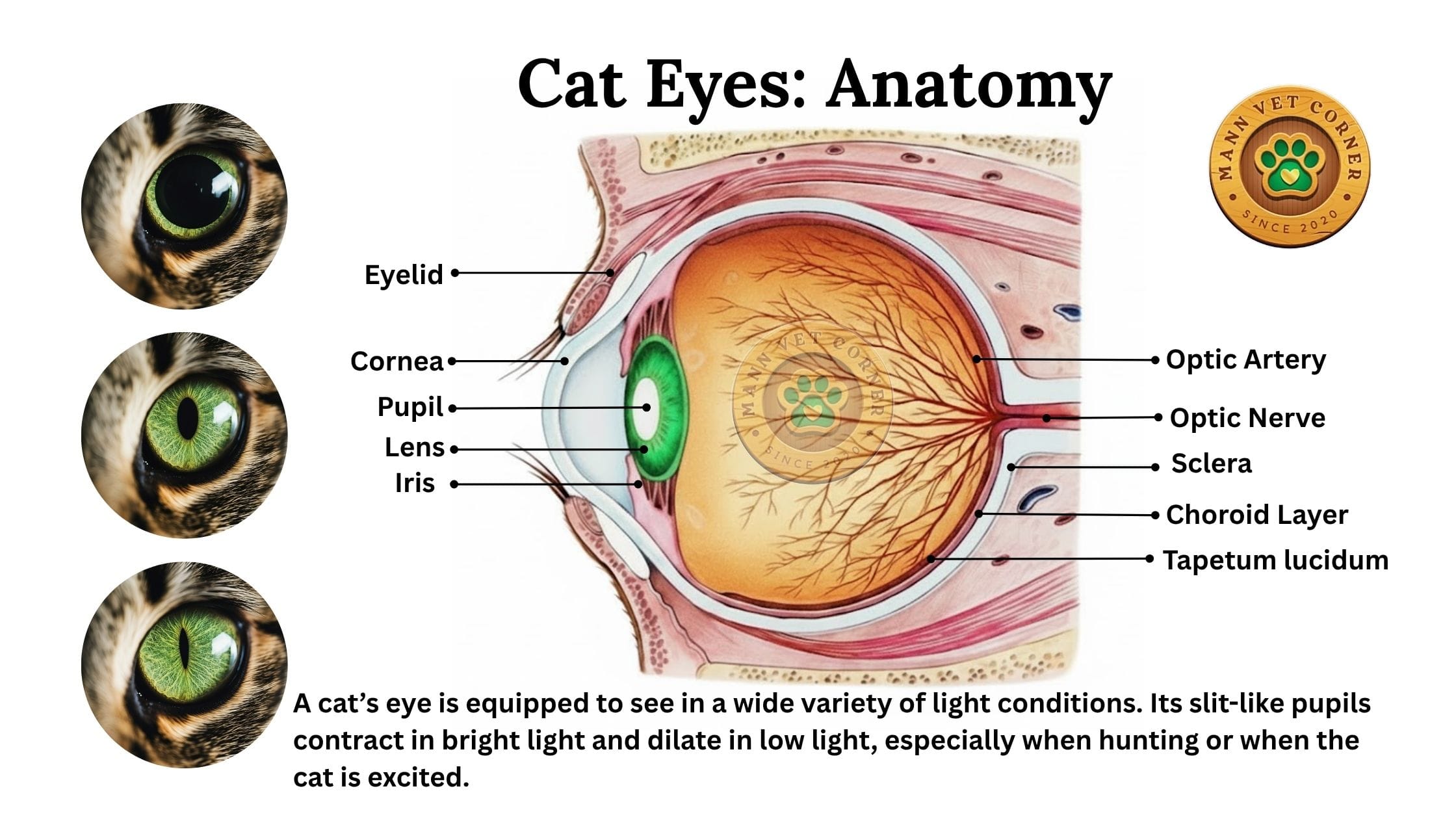 The anatomy of cat eyes reveals multiple specialized features that work together to create their superior visual capabilities.