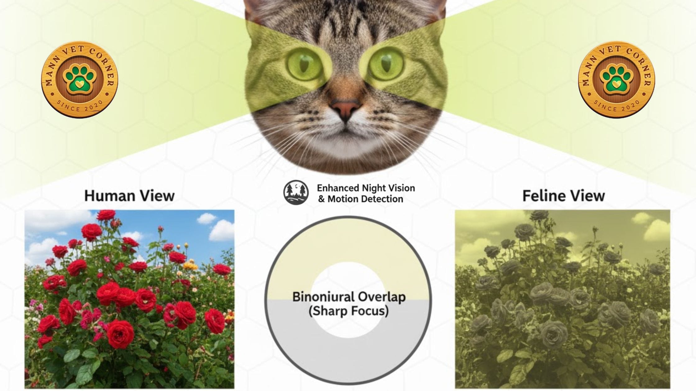 However, cats sacrifice some visual acuity for this wider view. While humans excel at seeing fine details directly ahead, cats are optimized for detecting motion across a broad visual field. Their eyes are positioned more toward the front of their heads than many prey animals, providing significant binocular overlap (approximately 140 degrees) that enhances depth perception for hunting.