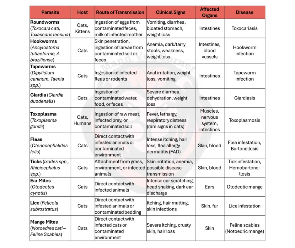 Parasites pose serious health risks to cats and their owners. Understanding the types of parasites, their symptoms, prevention, and treatment is crucial for feline health. Regular veterinary visits and preventive care ensure a long and healthy life for our beloved feline companions.