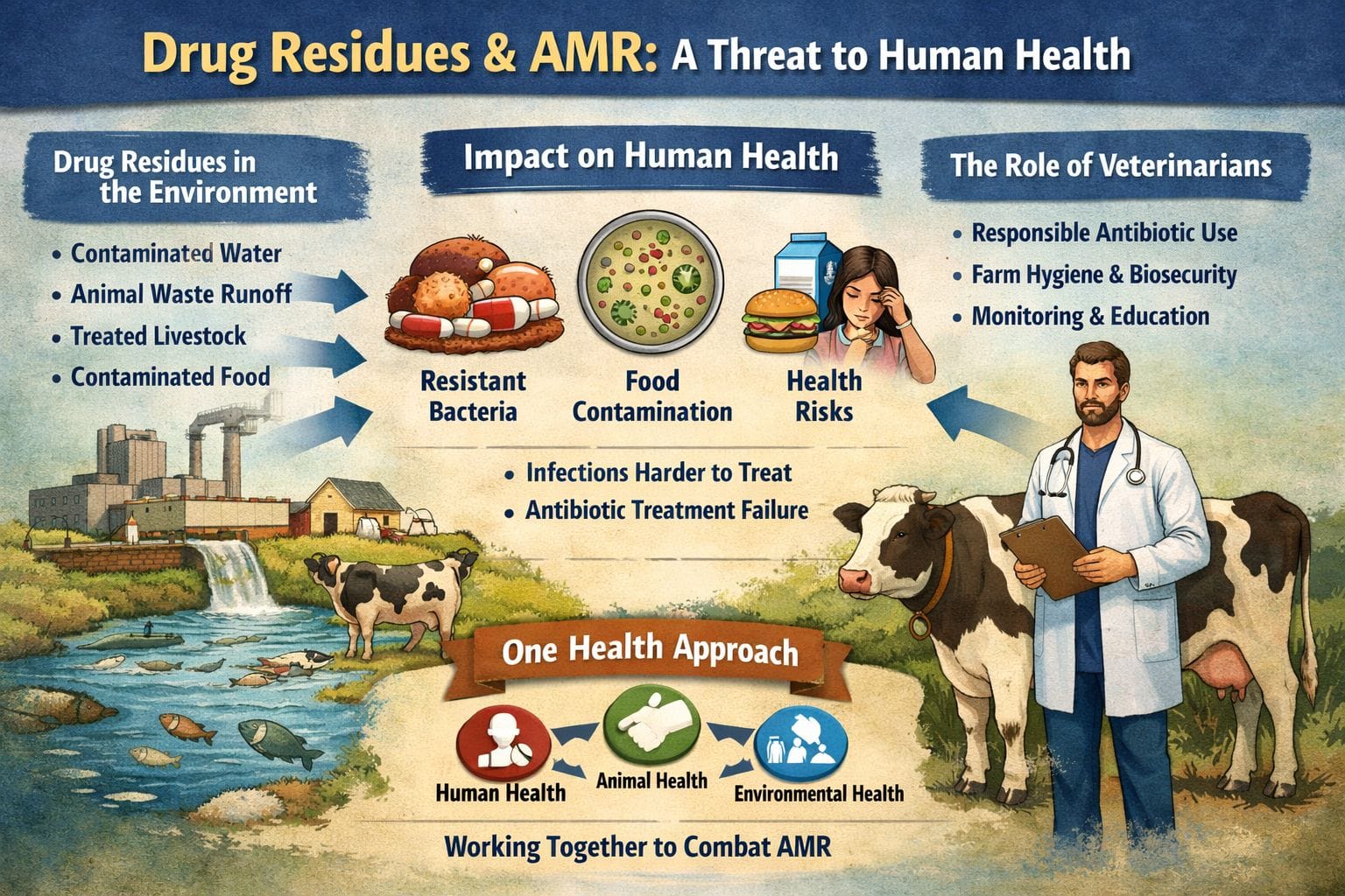 The chain from farm to fork to resistance is real, measurable, and preventable. Drug residues in animal foods are not just a food safety issue — they are a critical node in the global AMR network.