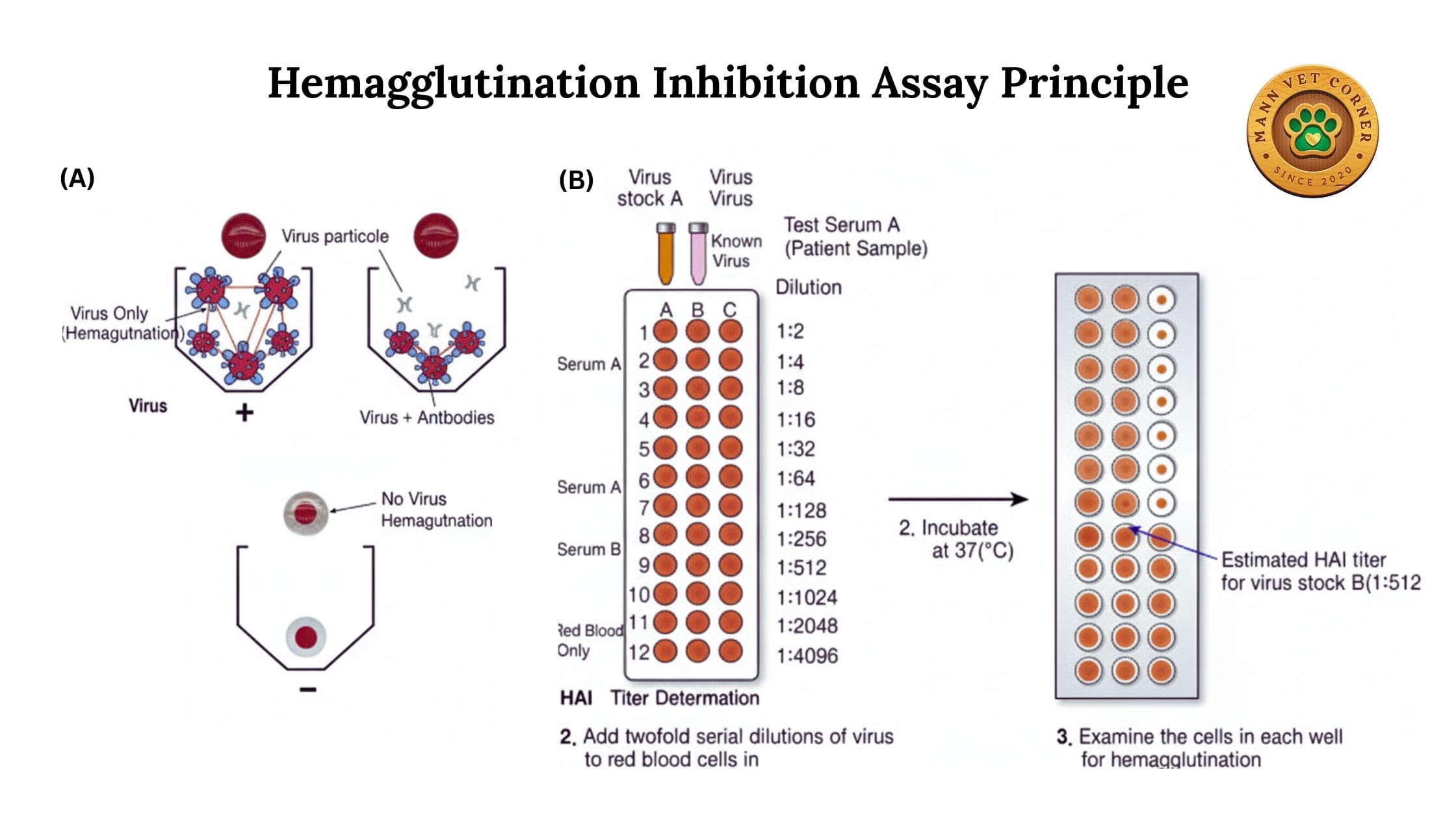 Procedure: Serial dilutions of serum are mixed with a known amount of virus before adding red blood cells. Antibodies in the serum neutralize the virus, preventing hemagglutination.