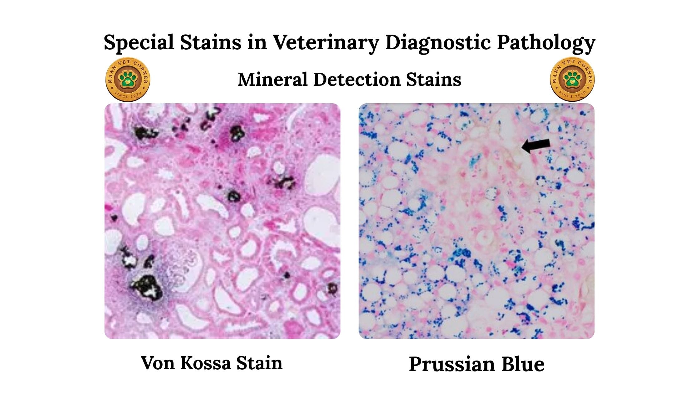 Prussian Blue (Iron Stain) detects hemosiderin accumulation, staining ferric iron bright blue. Veterinary pathologists use this when diagnosing hemolytic anemia, liver disease, or chronic hemorrhage.