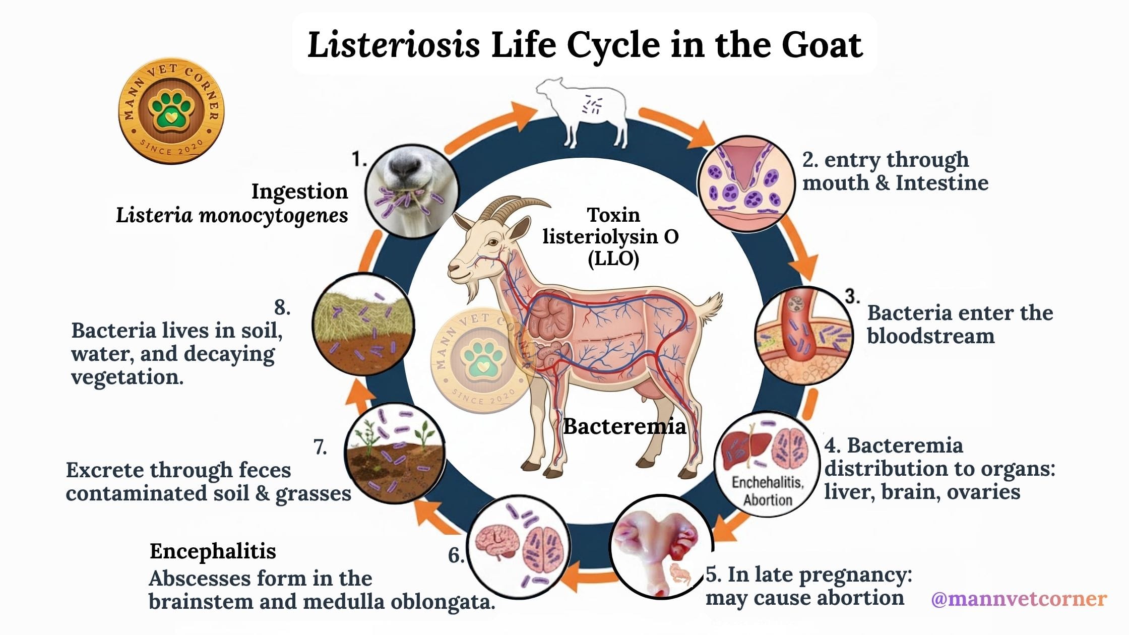 Once inside the body, the bacteria travel to the brainstem, causing the characteristic neurological symptoms farmers dread. In pregnant does, the organisms cross the placental barrier, leading to fetal infections and spontaneous abortions.