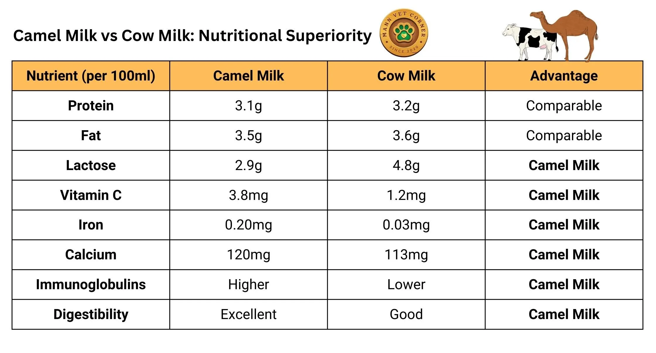 Comparative Analysis: Camel Milk vs Other Milk Types